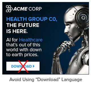 And definitely avoid using the word “Download” in your CTA. Security issues are ever-present in people’s minds these days and the last thing you want to do is scare off some potential engagement. The word “download” suggests that by clicking the ad, a file is going to download immediately to your desktop. So anybody with any common sense (or a proactive IT department trying to stop people from clicking everything) just won’t engage. For example, if you want someone to go to a landing page to download an eBook, say “Get the eBook,” not “DOWNLOAD the eBook”.